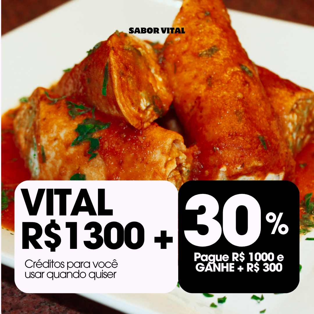 Com esse plano, você paga R$1000 e recebe R$1300 em créditos, garantindo R$300 de bônus para usar livremente no cardápio da Sabor Vital.